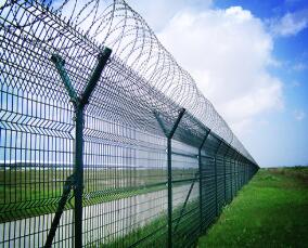 機場圍界防護網安裝的注意事項:1.保證每塊機場圍界網之間的搭接方向與路面行車方向一致。.2.立柱的安裝過程中必須保證立柱的穩固,以及和基礎的連接緊密.3.立柱安裝過程中應用小線對立柱安裝的順直度進行檢測,對局部進行調整,確保直線段直順,曲線段圓滑.4.護欄網網片必須和立柱連接牢靠,網面安裝平整,無明顯翹曲和凹凸現象.5.立柱臨時定位安裝后,安裝欄片,在確保安裝正確牢固后,再澆筑混泥土基礎并及時養護