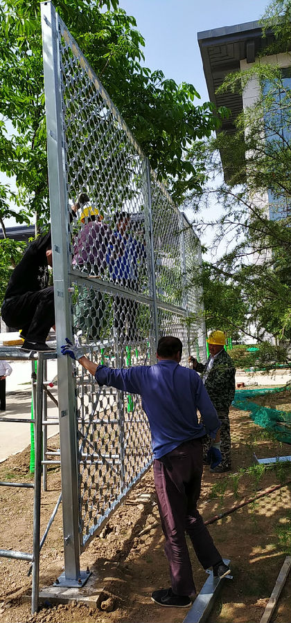 金屬網墻由網片、立柱、邊框、連接件等構件組成;網片宜為鋼絲焊接網或鋼板網;