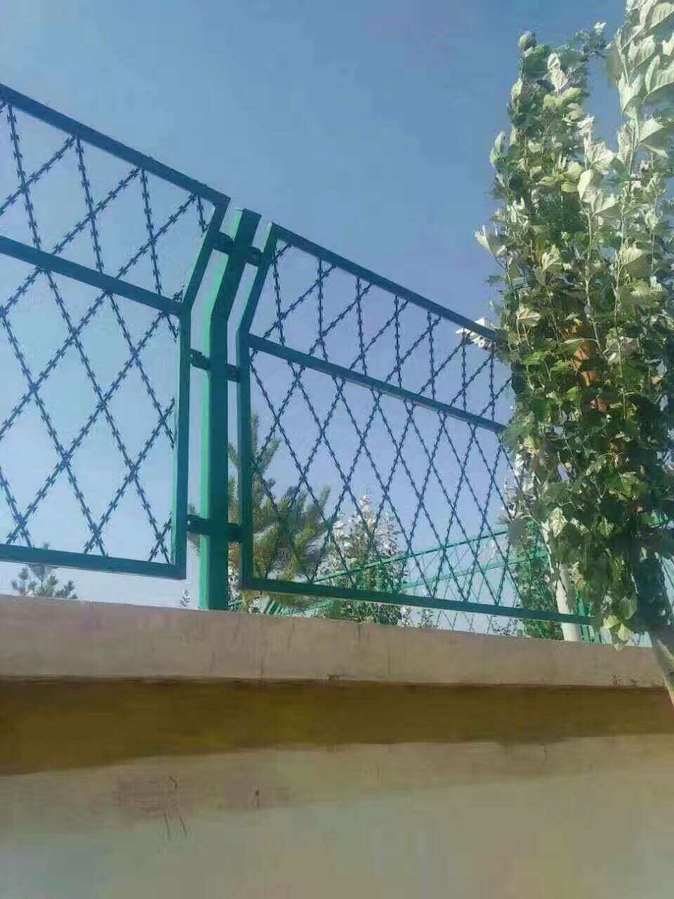 看守所刀刺片鋼網(wǎng)墻、V型支架鋼網(wǎng)墻、定制看守所鋼網(wǎng)墻,監(jiān)獄鋼網(wǎng)墻采用高強(qiáng)度的刀片刺網(wǎng)與普通防護(hù)網(wǎng)的結(jié)合,由V型支架立拄,加強(qiáng)型焊接片網(wǎng),安全防盜連接件和組成。監(jiān)獄護(hù)欄網(wǎng)網(wǎng)格結(jié)構(gòu)簡(jiǎn)練、便于運(yùn)輸、安裝不受地形起伏限制,特別是對(duì)于山地、坡地、多彎地帶適應(yīng)性極強(qiáng)。螺旋型交叉刀片刺網(wǎng)是在兩條刀片刺網(wǎng)之間以不銹鋼片和鍍鋅鋼片強(qiáng)力夾扣,展開(kāi)后即呈交叉狀,美觀又實(shí)用。