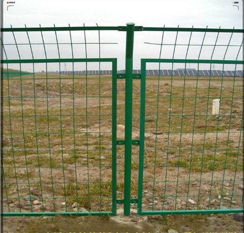 邊框隔離防護網常見的規: 光伏電站圍欄網 材料:低碳鋼絲 表面處理:電鍍、熱鍍、噴塑、浸塑(顏色包括:草綠、深綠、深藍、乳白、橘黃、大紅、褐紅、炭黑、中灰等顏色可以任選,或搭配混合) 產品規格與參數:(一套圍欄網是由一根立柱、一片網和相關配件組成) 村鎮光伏發電圍網材料:常規采用直徑4mm*低碳鋼絲點焊而成,絲徑范圍為2.8-6.0mm 網眼:常規尺寸為75x150 (mm),網孔尺寸*大范圍為30mm-300mm 高 x 寬:常規尺寸為1800x3000 (mm),*大尺寸為2500x4000mm 村鎮光伏發電圍網邊框:常規尺寸為14x30x1.5(mm) 、20x30x1.5 (mm)、30*50*1.5(mm) 浸塑厚度范圍:0.7-0.9(mm) 立柱直徑x厚度x高度:48x2x2200 (mm)、60x2x2200 (mm)、75*2*2200(mm)預埋基礎:500x300x300 (mm) 或者可以做150*150*5.0mm底盤上膨脹栓固定。附件:有防雨帽、連接片、防盜螺栓、其中連接方式為螺栓連接。