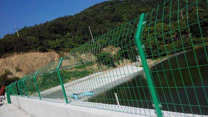 此圖護欄為雙邊絲護欄網,雙邊絲護欄網的產品優點:   1. 網格結構簡練 美觀實用;   2. 便于運輸,安裝不受地形起伏限制;   3. 特別是對于山地、坡地、多彎地帶適應性極強;   4.價格中等偏低,適合大面積采用。