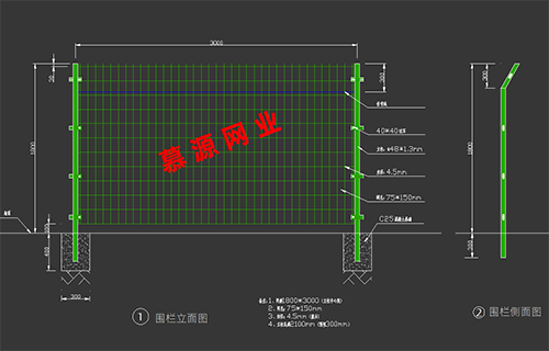 下邊是慕源公司繪制的雙邊護欄網圖紙,如果您需要更多樣式圖紙可電話聯系。