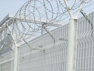 3、其他刀片刺繩型護欄網;*后便是些特殊生產工藝的護欄網,有的是外層布有刺繩、刀片或是其他防護、保護結構,更加讓人不敢輕易碰觸。基本上在眾多監獄、勞教所等封閉性區域內,會采用到這種形式的監獄護欄網。